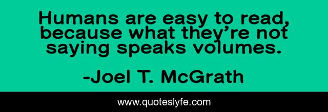 This page presents the quote "Humans are easy to read, because what they’re not saying speaks volumes.". Author of this quote is Joel T. McGrath. This quote is about behavioralism, psychology,.