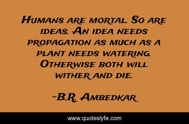 This page presents the quote "Humans are mortal. So are ideas. An idea needs propagation as much as a plant needs watering. Otherwise both will wither and die.". Author of this quote is B.R. Ambedkar. This quote is about intelligence, ideas-are-power, sociology,.