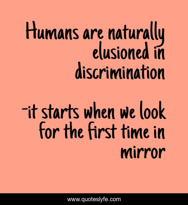 "it starts when we look for the first time in mirror Quotes." Quoteslyfe.com, 2025. Sat. 06 Dec. 2025. <https://www.quoteslyfe.com/quote/Humans-are-naturally-elusioned-in-discrimination-72443>.