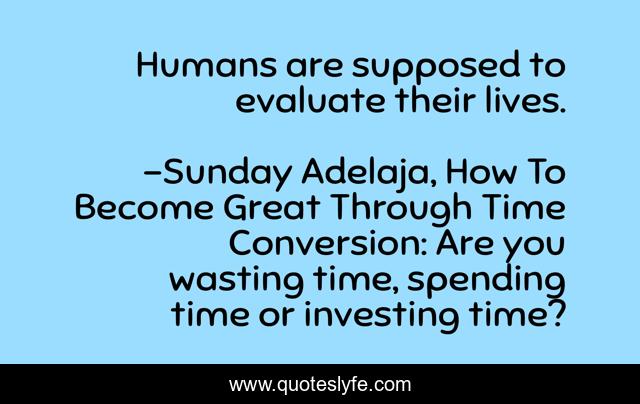 "Sunday Adelaja, How To Become Great Through Time Conversion: Are you wasting time, spending time or investing time? Quotes." Quoteslyfe.com, 2025. Sun. 07 Dec. 2025. <https://www.quoteslyfe.com/quote/Humans-are-supposed-to-evaluate-their-lives-39292>.