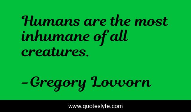 This page presents the quote "Humans are the most inhumane of all creatures.". Author of this quote is Gregory Lovvorn. This quote is about people-suck, animals, behavior, truth,.