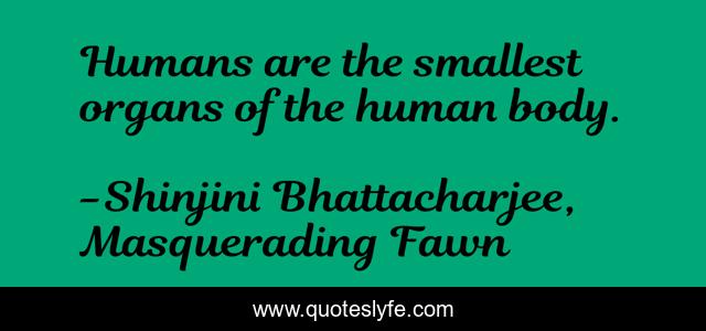 This page presents the quote "Humans are the smallest organs of the human body.". Author of this quote is Shinjini Bhattacharjee, Masquerading Fawn. .