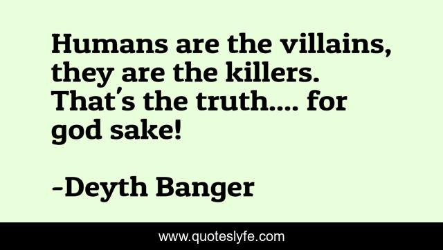 This page presents the quote "Humans are the villains, they are the killers. That's the truth.... for god sake!". Author of this quote is Deyth Banger. This quote is about villains, for, sake, god, humans, killers, truth, humanity,.