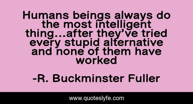 This page presents the quote "Humans beings always do the most intelligent thing…after they’ve tried every stupid alternative and none of them have worked". Author of this quote is R. Buckminster Fuller. This quote is about intelligence, stupidity, mankind,.