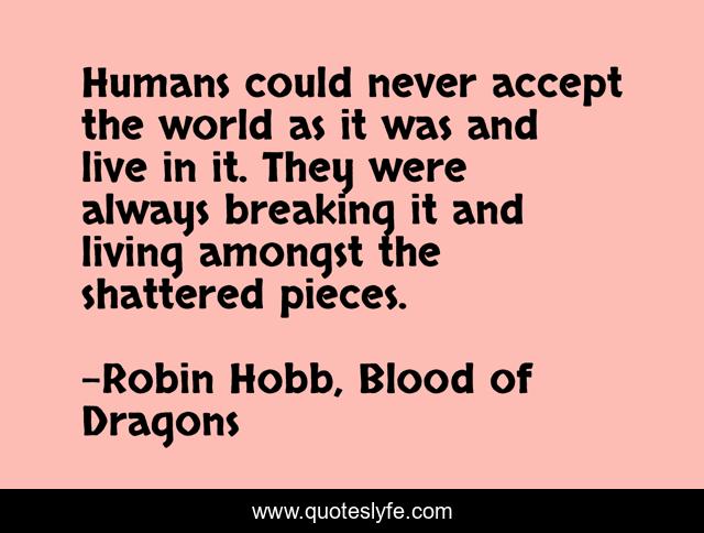 "Robin Hobb, Blood of Dragons Quotes." Quoteslyfe.com, 2025. Fri. 05 Dec. 2025. <https://www.quoteslyfe.com/quote/Humans-could-never-accept-the-world-as-72889>.
