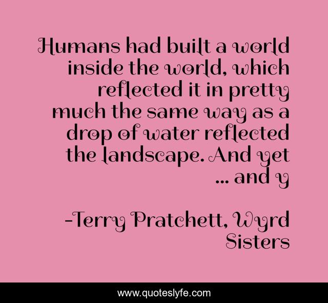 This page presents the quote "Humans had built a world inside the world, which reflected it in pretty much the same way as a drop of water reflected the landscape. And yet ... and y". Author of this quote is Terry Pratchett, Wyrd Sisters. This quote is about escapism, escape, art, theatre, human-nature,.