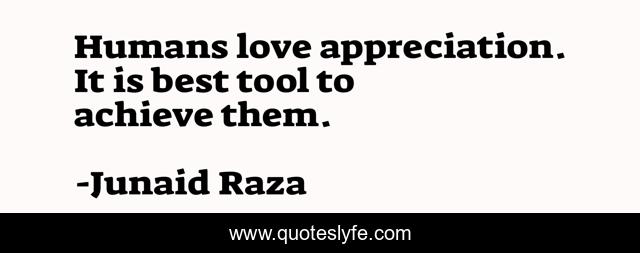 This page presents the quote "Humans love appreciation. It is best tool to achieve them.". Author of this quote is Junaid Raza. .