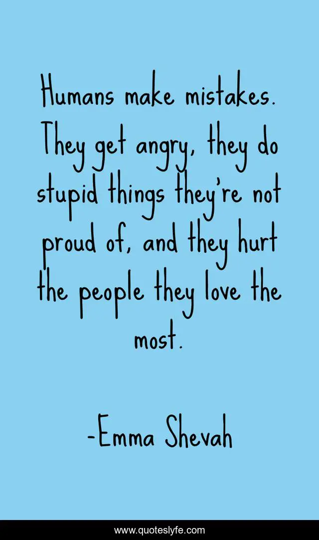 This page presents the quote "Humans make mistakes. They get angry, they do stupid things they're not proud of, and they hurt the people they love the most.". Author of this quote is Emma Shevah. .