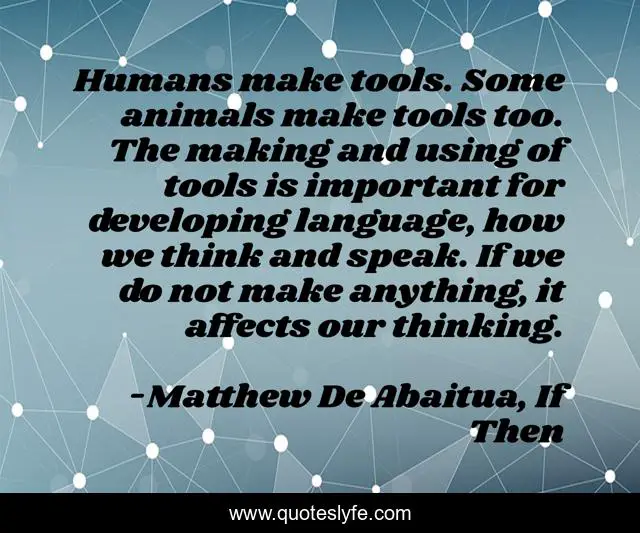 "Matthew De Abaitua, If Then Quotes." Quoteslyfe.com, 2025. Sat. 06 Dec. 2025. <https://www.quoteslyfe.com/quote/Humans-make-tools-Some-animals-make-tools-159154>.