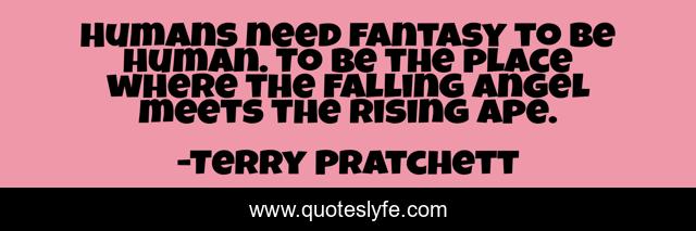 This page presents the quote "Humans need fantasy to be human. To be the place where the falling angel meets the rising ape.". Author of this quote is Terry Pratchett. This quote is about fantasy, humour,.