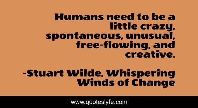 This page presents the quote "Humans need to be a little crazy, spontaneous, unusual, free-flowing, and creative.". Author of this quote is Stuart Wilde, Whispering Winds of Change. This quote is about creativity, humanity,.