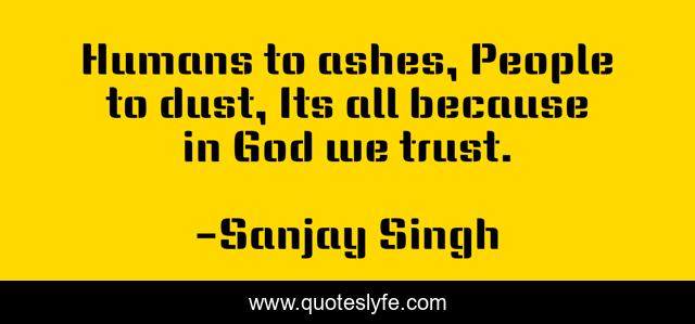 This page presents the quote "Humans to ashes, People to dust, Its all because in God we trust.". Author of this quote is Sanjay Singh. This quote is about dark, religious,.