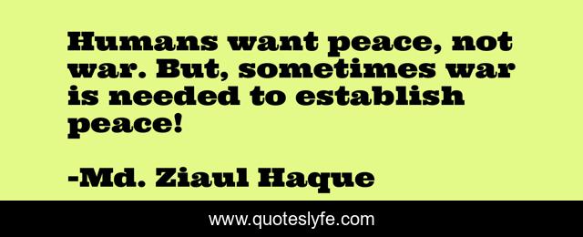 This page presents the quote "Humans want peace, not war. But, sometimes war is needed to establish peace!". Author of this quote is Md. Ziaul Haque. This quote is about need, establish, peace, humans, war,.