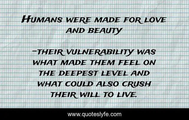 "their vulnerability was what made them feel on the deepest level and what could also crush their will to live. Quotes." Quoteslyfe.com, 2025. Sun. 07 Dec. 2025. <https://www.quoteslyfe.com/quote/Humans-were-made-for-love-and-beauty-237204>.
