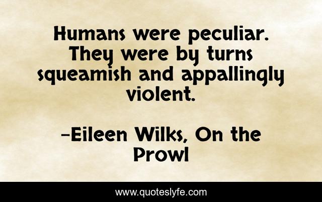 This page presents the quote "Humans were peculiar. They were by turns squeamish and appallingly violent.". Author of this quote is Eileen Wilks, On the Prowl. This quote is about humans, humanity,.