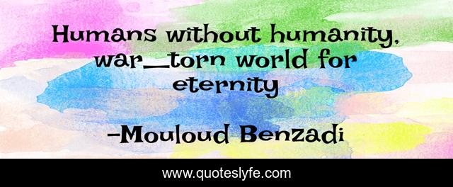This page presents the quote "Humans without humanity, war_torn world for eternity". Author of this quote is Mouloud Benzadi. This quote is about eternity, mouloud-benzadi-مولود-بن-زادي, humanity, war,.
