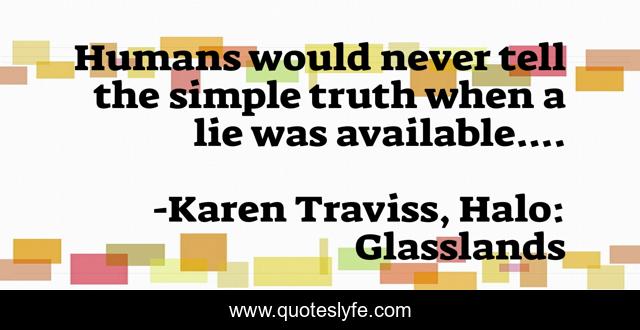 This page presents the quote "Humans would never tell the simple truth when a lie was available....". Author of this quote is Karen Traviss, Halo: Glasslands. This quote is about karen-traviss, halo, science-fiction,.