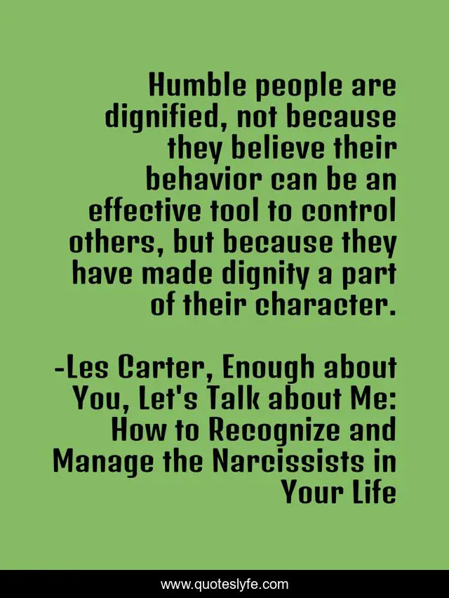"Les Carter, Enough about You, Let's Talk about Me: How to Recognize and Manage the Narcissists in Your Life Quotes." Quoteslyfe.com, 2025. Sat. 06 Dec. 2025. <https://www.quoteslyfe.com/quote/Humble-people-are-dignified-not-because-they-179283>.