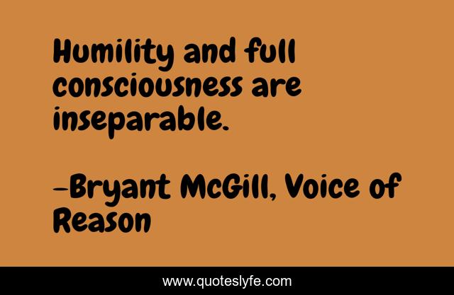 This page presents the quote "Humility and full consciousness are inseparable.". Author of this quote is Bryant McGill, Voice of Reason. This quote is about consciousness, humility,.