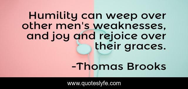 This page presents the quote "Humility can weep over other men's weaknesses, and joy and rejoice over their graces.". Author of this quote is Thomas Brooks. .