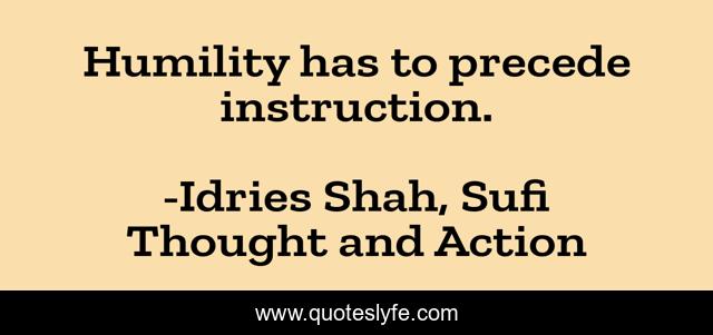 This page presents the quote "Humility has to precede instruction.". Author of this quote is Idries Shah, Sufi Thought and Action. This quote is about sufism, sufis, psychology, humility, wisdom,.