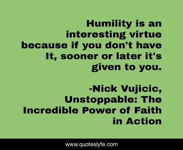 "Nick Vujicic, Unstoppable: The Incredible Power of Faith in Action Quotes." Quoteslyfe.com, 2025. Sat. 06 Dec. 2025. <https://www.quoteslyfe.com/quote/Humility-is-an-interesting-virtue-because-if-179239>.