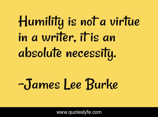 This page presents the quote "Humility is not a virtue in a writer, it is an absolute necessity.". Author of this quote is James Lee Burke. .