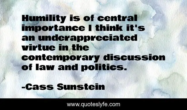 This page presents the quote "Humility is of central importance I think it's an underappreciated virtue in the contemporary discussion of law and politics.". Author of this quote is Cass Sunstein. This quote is about law, think, humility,.