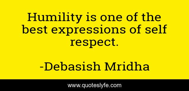 This page presents the quote "Humility is one of the best expressions of self respect.". Author of this quote is Debasish Mridha. This quote is about self-respect, self-expression, philosophy, debasish-mridha, inspirational, enthusiasm,.