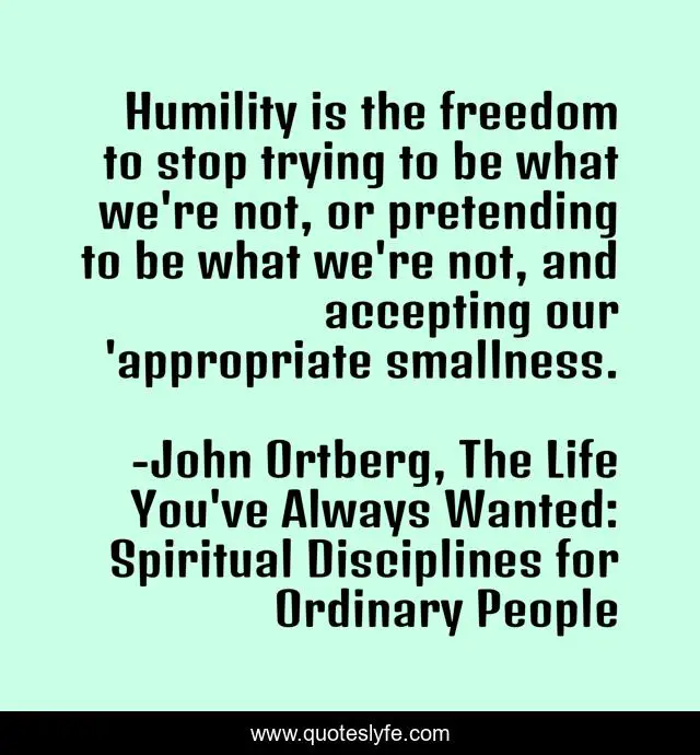 This page presents the quote "Humility is the freedom to stop trying to be what we're not, or pretending to be what we're not, and accepting our 'appropriate smallness.". Author of this quote is John Ortberg, The Life You've Always Wanted: Spiritual Disciplines for Ordinary People. .
