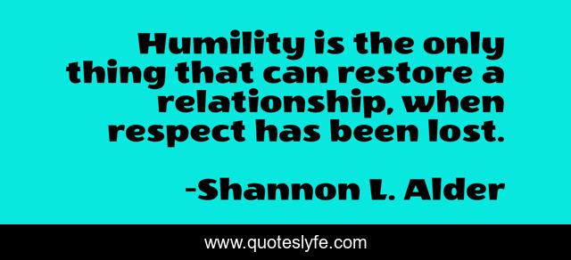 Humility is the only thing that can restore a relationship, when respect has been lost.