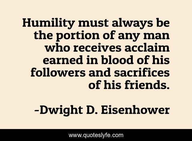 This page presents the quote "Humility must always be the portion of any man who receives acclaim earned in blood of his followers and sacrifices of his friends.". Author of this quote is Dwight D. Eisenhower. This quote is about sacrifice, war, humility,.
