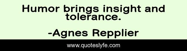 This page presents the quote "Humor brings insight and tolerance.". Author of this quote is Agnes Repplier. .