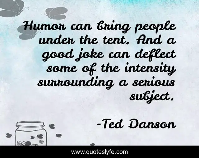 This page presents the quote "Humor can bring people under the tent. And a good joke can deflect some of the intensity surrounding a serious subject.". Author of this quote is Ted Danson. This quote is about bring, good, people,.