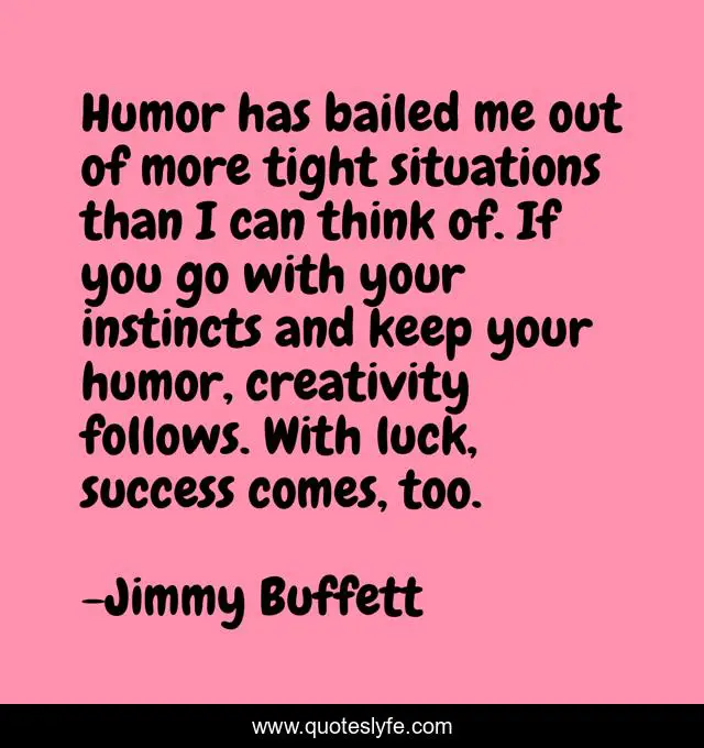 This page presents the quote "Humor has bailed me out of more tight situations than I can think of. If you go with your instincts and keep your humor, creativity follows. With luck, success comes, too.". Author of this quote is Jimmy Buffett. This quote is about creativity, success, luck,.
