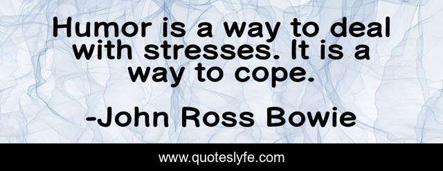 This page presents the quote "Humor is a way to deal with stresses. It is a way to cope.". Author of this quote is John Ross Bowie. This quote is about way, deal, cope,.