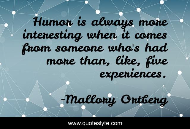 This page presents the quote "Humor is always more interesting when it comes from someone who's had more than, like, five experiences.". Author of this quote is Mallory Ortberg. This quote is about interesting, experiences,.