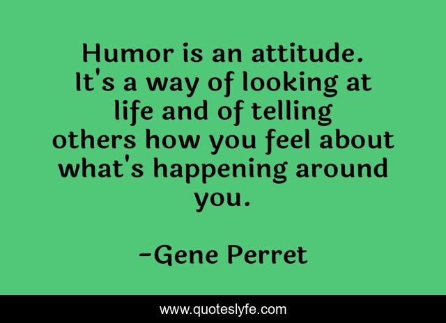 This page presents the quote "Humor is an attitude. It's a way of looking at life and of telling others how you feel about what's happening around you.". Author of this quote is Gene Perret. .