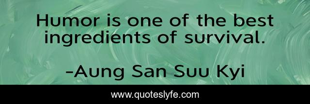 This page presents the quote "Humor is one of the best ingredients of survival.". Author of this quote is Aung San Suu Kyi. This quote is about survival, best, ingredients,.