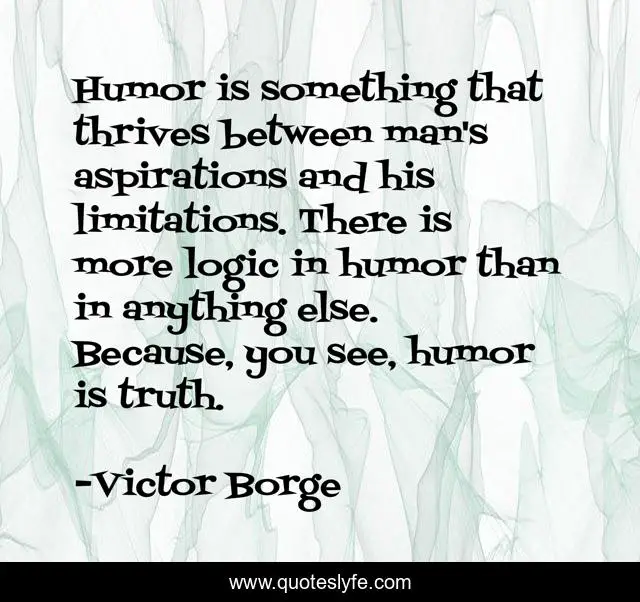 This page presents the quote "Humor is something that thrives between man's aspirations and his limitations. There is more logic in humor than in anything else. Because, you see, humor is truth.". Author of this quote is Victor Borge. This quote is about funny, humor, humorous, borge, victor-borge, comedy, victor,.