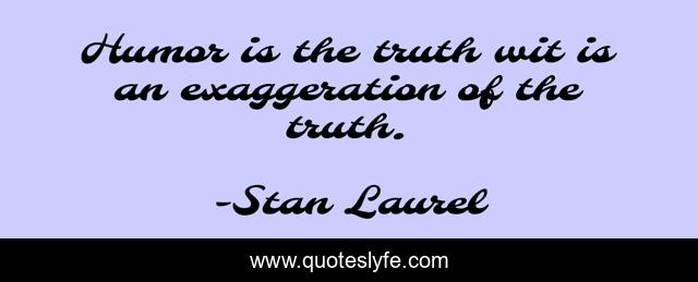 This page presents the quote "Humor is the truth wit is an exaggeration of the truth.". Author of this quote is Stan Laurel. This quote is about wit, truth, exaggeration,.