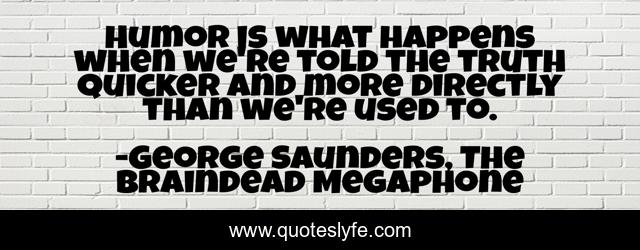 This page presents the quote "Humor is what happens when we're told the truth quicker and more directly than we're used to.". Author of this quote is George Saunders, The Braindead Megaphone. This quote is about humor, humour,.