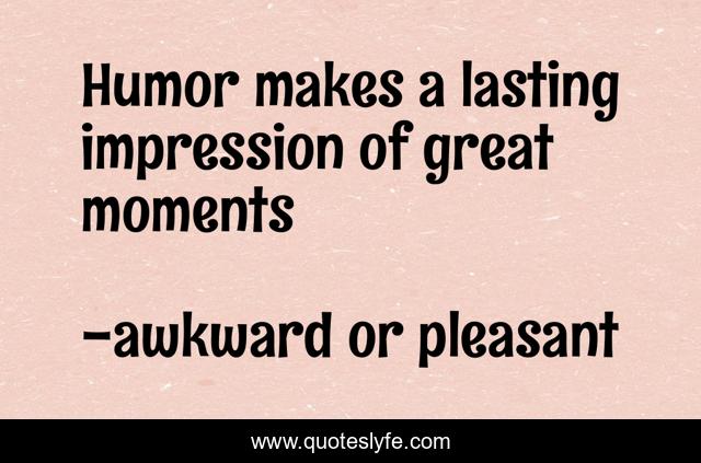 This page presents the quote "Humor makes a lasting impression of great moments". Author of this quote is awkward or pleasant. .
