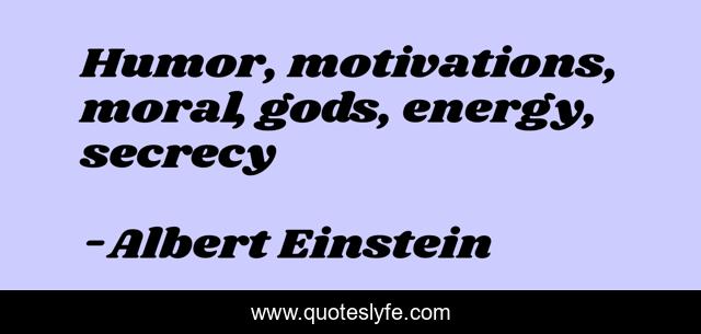 This page presents the quote "Humor, motivations, moral, gods, energy, secrecy". Author of this quote is Albert Einstein. This quote is about motivations, science, inspiration, humor, thinking,.