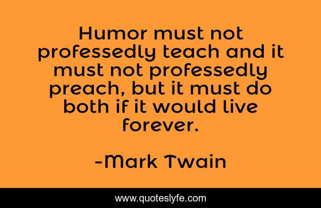 This page presents the quote "Humor must not professedly teach and it must not professedly preach, but it must do both if it would live forever.". Author of this quote is Mark Twain. This quote is about teach, forever, live,.