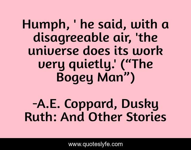 This page presents the quote "Humph, ' he said, with a disagreeable air, 'the universe does its work very quietly.' (“The Bogey Man”)". Author of this quote is A.E. Coppard, Dusky Ruth: And Other Stories. This quote is about fay, universe, imp, faerie, leprechaun, fairy,.
