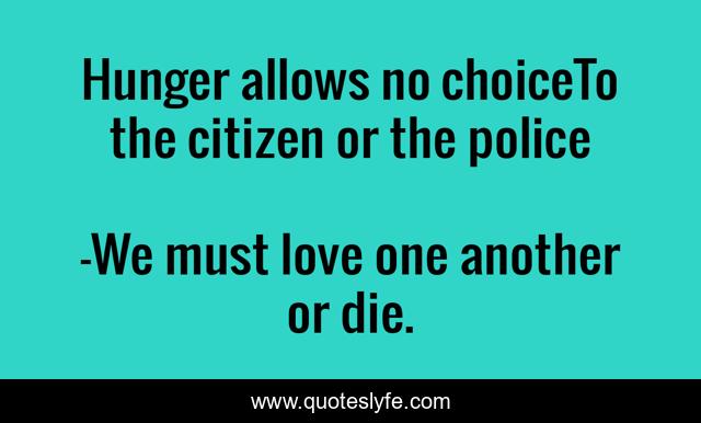 This page presents the quote "Hunger allows no choiceTo the citizen or the police". Author of this quote is We must love one another or die.. .