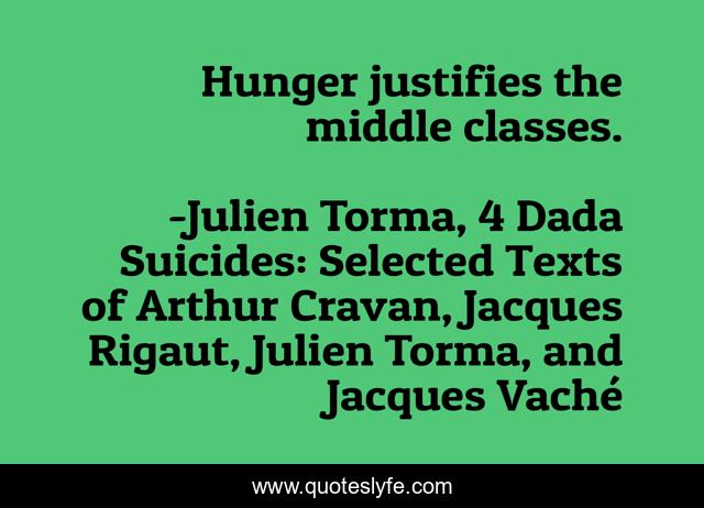"Julien Torma, 4 Dada Suicides: Selected Texts of Arthur Cravan, Jacques Rigaut, Julien Torma, and Jacques Vaché Quotes." Quoteslyfe.com, 2025. Fri. 05 Dec. 2025. <https://www.quoteslyfe.com/quote/Hunger-justifies-the-middle-classes-204911>.