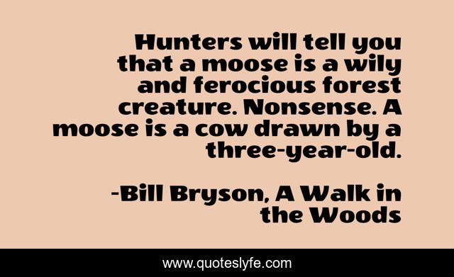 "Bill Bryson, A Walk in the Woods Quotes." Quoteslyfe.com, 2025. Fri. 05 Dec. 2025. <https://www.quoteslyfe.com/quote/Hunters-will-tell-you-that-a-moose-72325>.