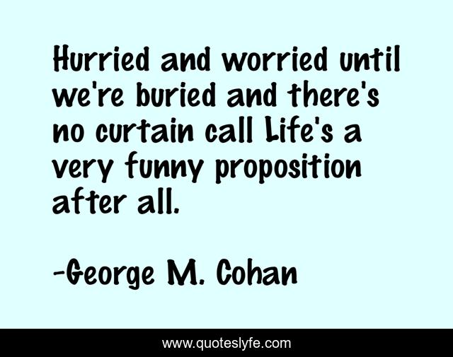 This page presents the quote "Hurried and worried until we're buried and there's no curtain call Life's a very funny proposition after all.". Author of this quote is George M. Cohan. .